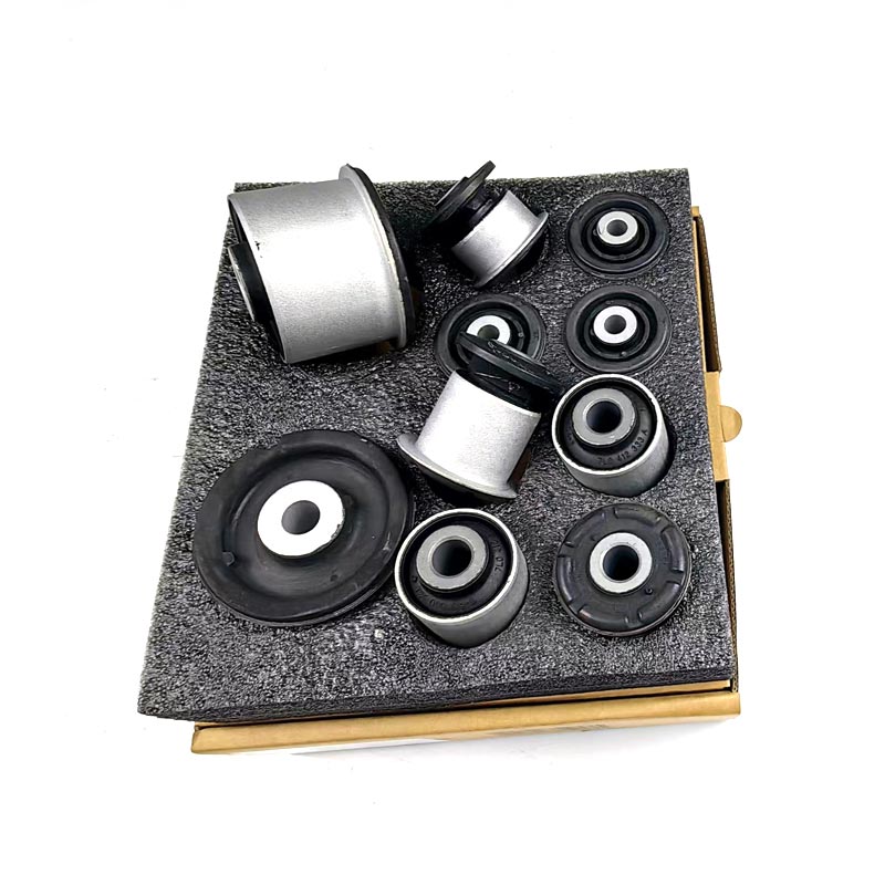 Tuno China manufacturer factory supply Audi Q7 Porsche Cayenne Front Suspension Control Arm Bushing Kit (OE 7L0407CTTZ), designed for front suspension repair and chassis maintenance. This kit includes 10 bushings per vehicle and is made with a high-strength rubber and metal sleeve structure to absorb road vibration, reduce chassis noise, and improve suspension stability.